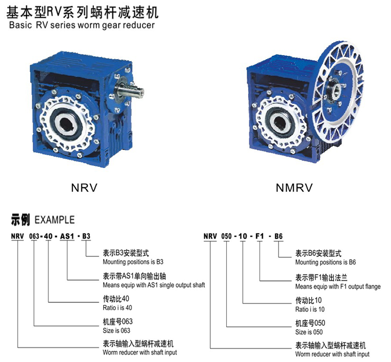 RV系列蝸輪蝸桿減速機分類形式有兩種: